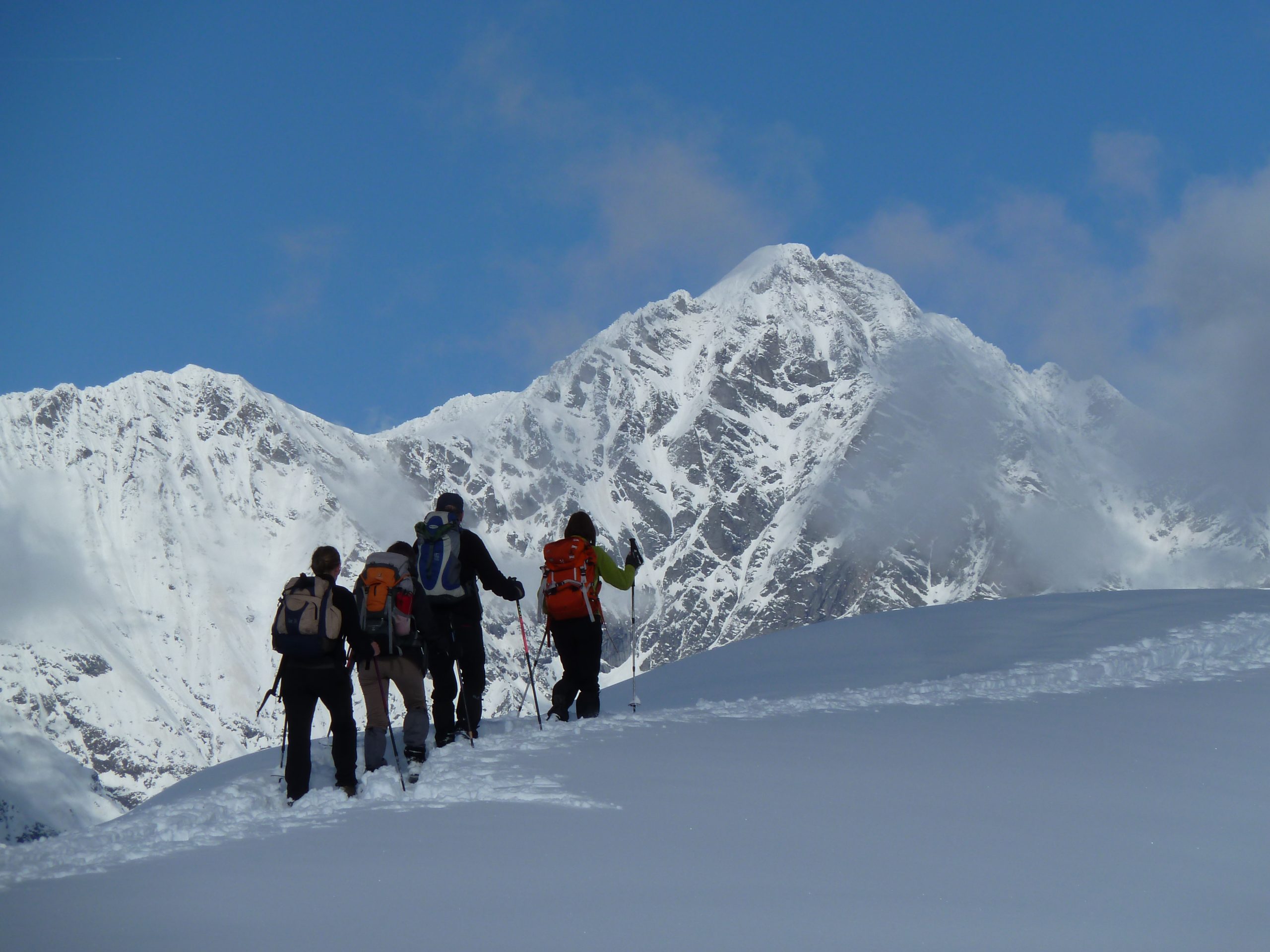 Schneeschuhtouren vom Standquartier im hintersten Navistal. Anreise mit öffentlichen Verkehrsmitteln. Je nach Wetter und Schneelage gute Tourenmöglichkeiten direkt vom Haus weg auf sonnigen Süd- oder schneereichen Nordseiten zu Almen und hübschen Gipfeln.